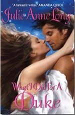 ![]() Penny Royal Green Series , Book 5 A Perfect 10 Avon ISBN: 978-0-06-188568-6 February 2011 Historical Romance England – 1800's Alexander Moncrieffe, the sixth Duke of Falconbridge, is not well liked; in fact, he is feared, and some even say that he poisoned his wife a decade ago. He is affianced to Lady Abigail, and now he finds her in bed with Ian Eversea. Moncrieffe throws Ian's clothes out the window and suggests that Ian leave the same way. Ian leaves with only a ragged shirt and one boot. Moncrieffe's fiancée tries to entice him into bed, but he suggests she break their engagement and go on a protracted trip. It is said that Moncrieffe is good at exacting revenge and has told Ian that his punishment will fit the crime. A week later, the Everseas host a house party. Genevieve Eversea is close friends with Lord Harry and Millicent. She has been waiting for Harry to propose marriage and is heartbroken when he tells her he hopes to marry Millicent. Much to Ian's horror, Alex Moncrieffe attends the house party. He even finds his lost boot on his bed! Genevieve's mother talks her into going on a walk with Moncrieffe and others. She hopes for a titled and wealthy gentleman for her daughter. Alex tries to talk to her, but finds her colorless and dull. He is determined to charm her in spite of her indifference. He has never failed to charm when he decides to seduce a woman. Alex finally gets her to smile, and he sees her beauty and intelligence. Alex is a clever man; he has a parry and thrust conversation at the ball with Genevieve. She tries to shake him off onto other ladies, but inevitably saves the woman when he is too overbearing to them. She is illusive, and he realizes that she is mooning over Harry. He finds that he is enjoying his conversations with her. Will he compromise her and have his revenge? Readers will know just what the duke has in mind to get his revenge when he shows up at the Eversea house party. But perhaps the tables can be turned on him, and he may find more than he bargained for! Alex is a marvelous, arrogant duke, sure of his power and unconcerned whether people like him or not. He didn't care about Abigail's defection because his heart was not touched, but he does not like to be thwarted, and perhaps he is lonely, although he would never admit it. Genevieve is a young woman heart-broken over Harry's choice. She is smart and has a quiet beauty. As he talks to her, Alex becomes more attracted, and she finds him enthralling because he is a man out of her experience. Superb writing with clever conversations make Julie Anne Long a favorite of mine, and WHAT I DID FOR A DUKE certainly does not disappoint! The storyline is fascinating, as are the characters in this marvelous tale. Sometimes amusing, sometimes serious, and always fascinating, this is another tale for my keeper shelf and a second read. The wonderful Eversea family has taken us on several romantic ventures, all with spectacular results, but this one is my favorite. It is a sizzling romance and an amazing story, the kind of book that you can't stop reading and hate to finish. We only give Perfect 10s for the best books at Romance Readers Today, but this one really deserves a 10+ or an 11. Don't miss it! I guarantee you will want to read all of Ms. Long's books after reading WHAT I DID FOR A DUKE! It is the best romance that I have read for a long time! Marilyn Heyman |